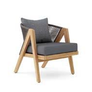 Characterized by its dramatic woven rope backrests, the Walters Outdoor Arbor Collection o ers lounging and dining essentials with a stylish edge. The collection’s dynamic A-frame teak structures are o set by elegantly curved backrests, which are crafted from durable, weather-resistant rope.