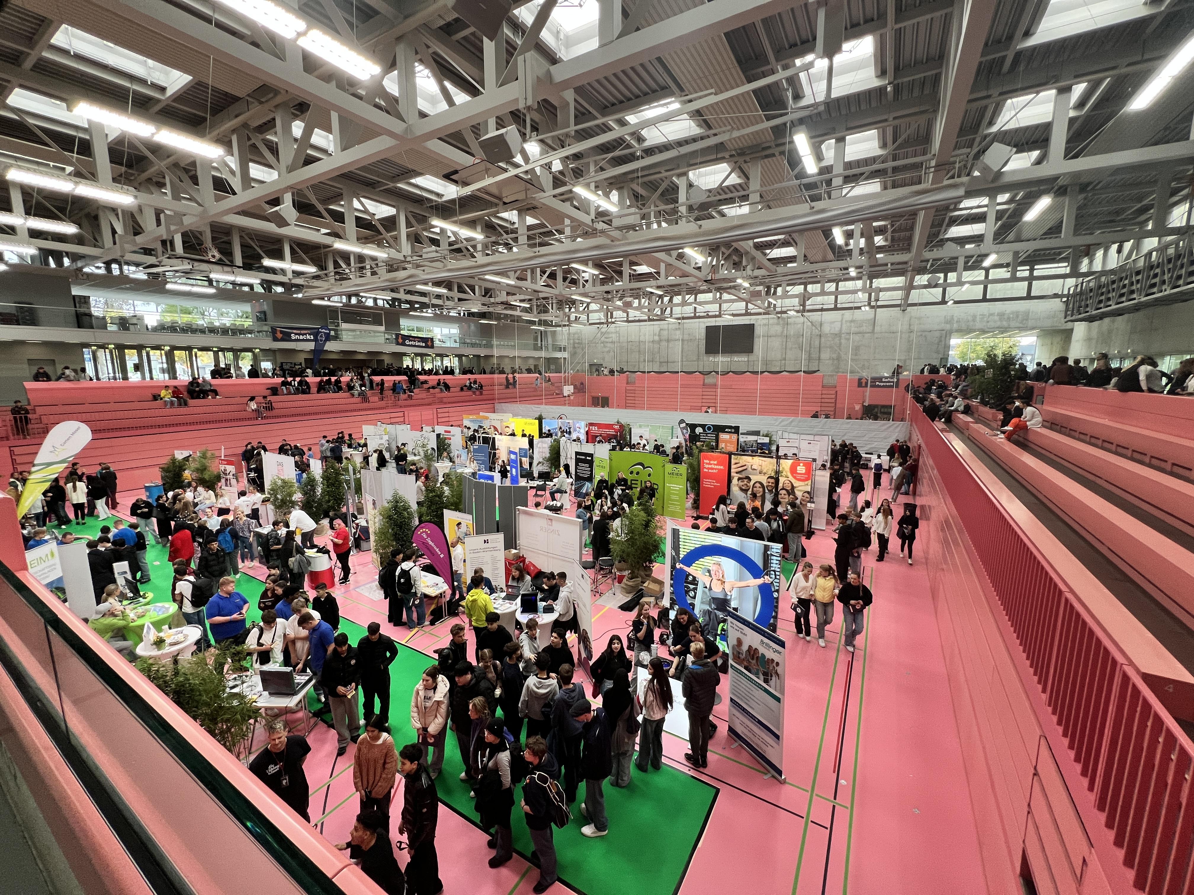 Ca. 1.500 Schüler*innen, die neugierig auf die anwesenden Organisationen sind, darunter einige mit der bereits konkreten Absicht, ein (duales/ internationales/ „normales“) Studium zu beginnen oder eine Ausbildung zu machen, aber noch nicht wissen bei wem