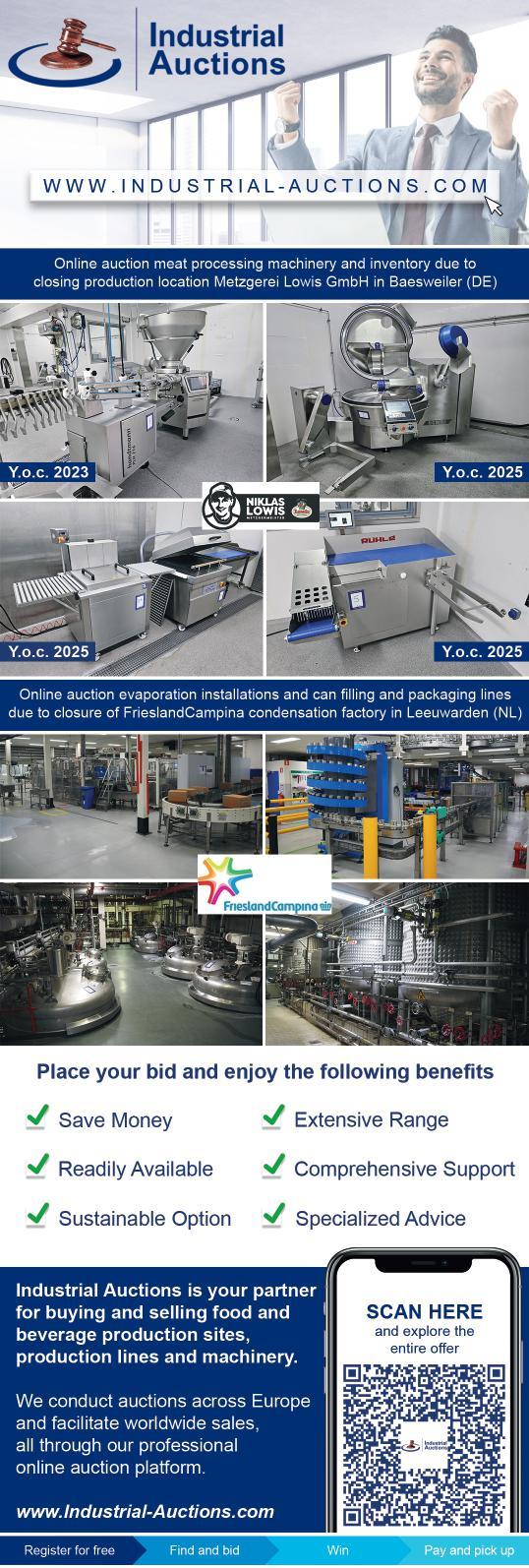 Industrial Auctions is known for its specialisation in online auctions for the food industry. Thanks to its international reach and transparent working methods, companies from all over the world find their way to the platform. The auction at Karl Kemper is a striking example of this: a combination of German reliability, dependable technology and an excellent opportunity for entrepreneurs to purchase high-quality machines on attractive terms.