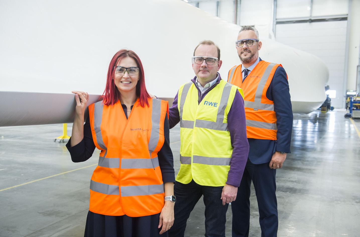 Tom Glover, Darren Davidson, Vice President Siemens Energy UK&I and Siemens Gamesa UK, and Melanie Onn, MP for Great Grimsby and Cleethorpes.