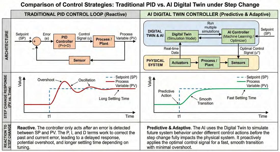 Unlike conventional industrial controls that react to changes after they occur, EnerTherm’s digital twin approach creates a virtual replica of a facility’s entire thermal system. This digital model runs continuously alongside the physical equipment, processing data from sensors throughout the plant to predict outcomes and optimise settings before problems develop.