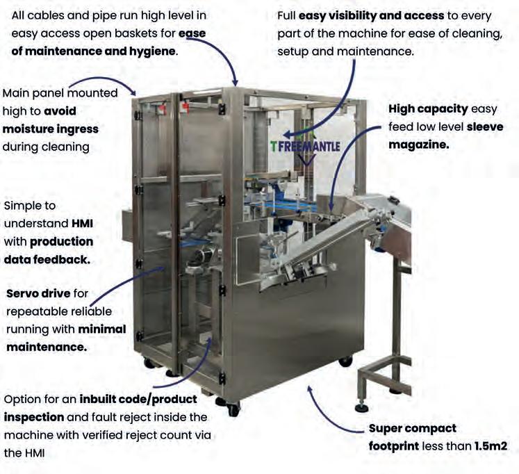 The S01 Compact sleever is a patentprotected design demonstrating everything good British engineering should represent. With its innovative, simplistic design removing the reoccurring issue of machine footprint for Food & Drink businesses worldwide, the S01 boasts the smallest footprint of any preglued sleever on the market.