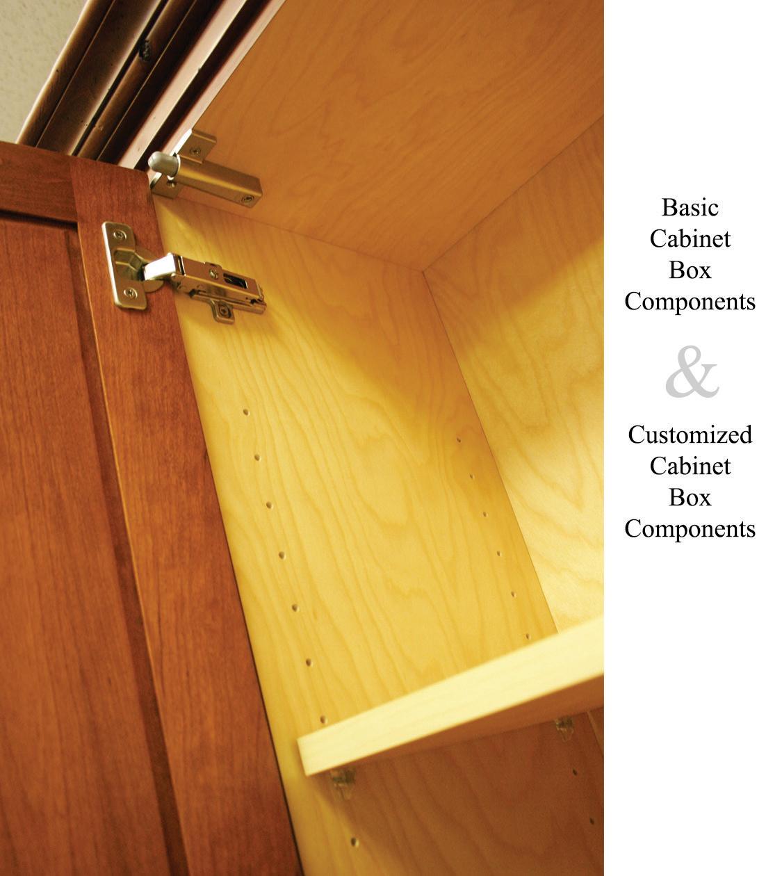 • Operations may include dadoes, shelf bore holes, toe kick notches, etc.