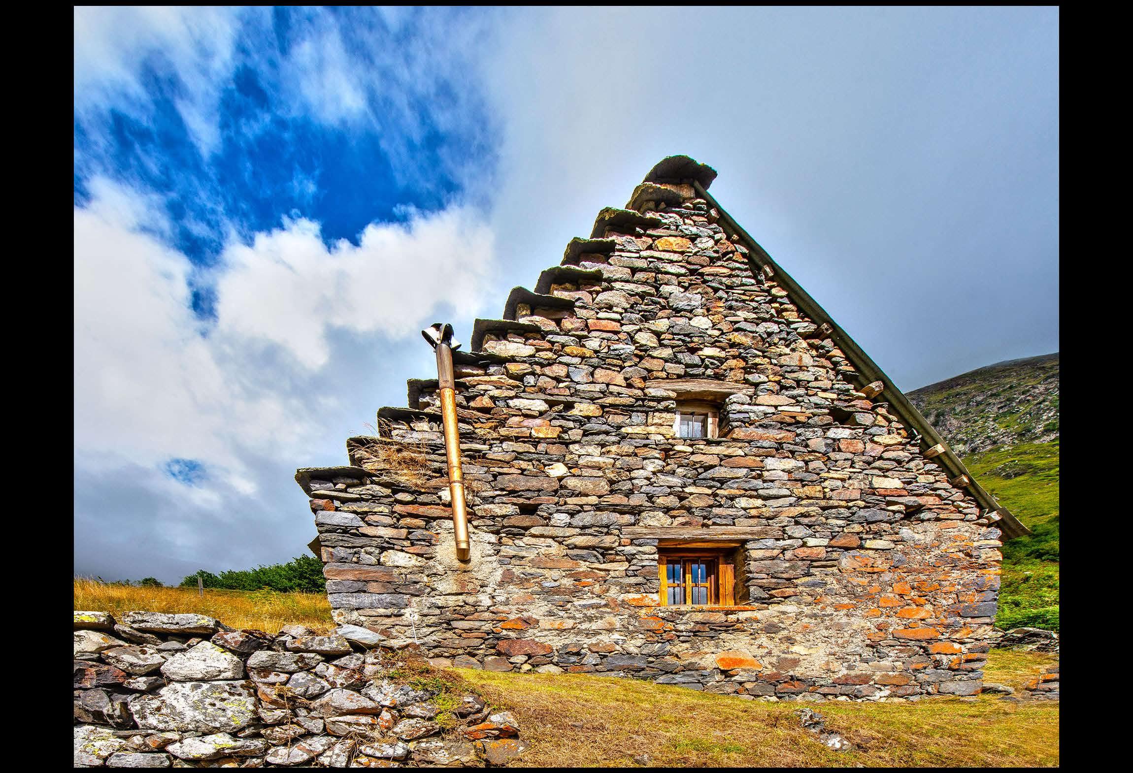 Contemporary life-size art, for these particularly original personalized barns, using local granite for the elaboration of architectural structures. As if the mountain, partially tamed, participated directly in human life, like an outgrowth of the Earth protecting us from its telluric power ...