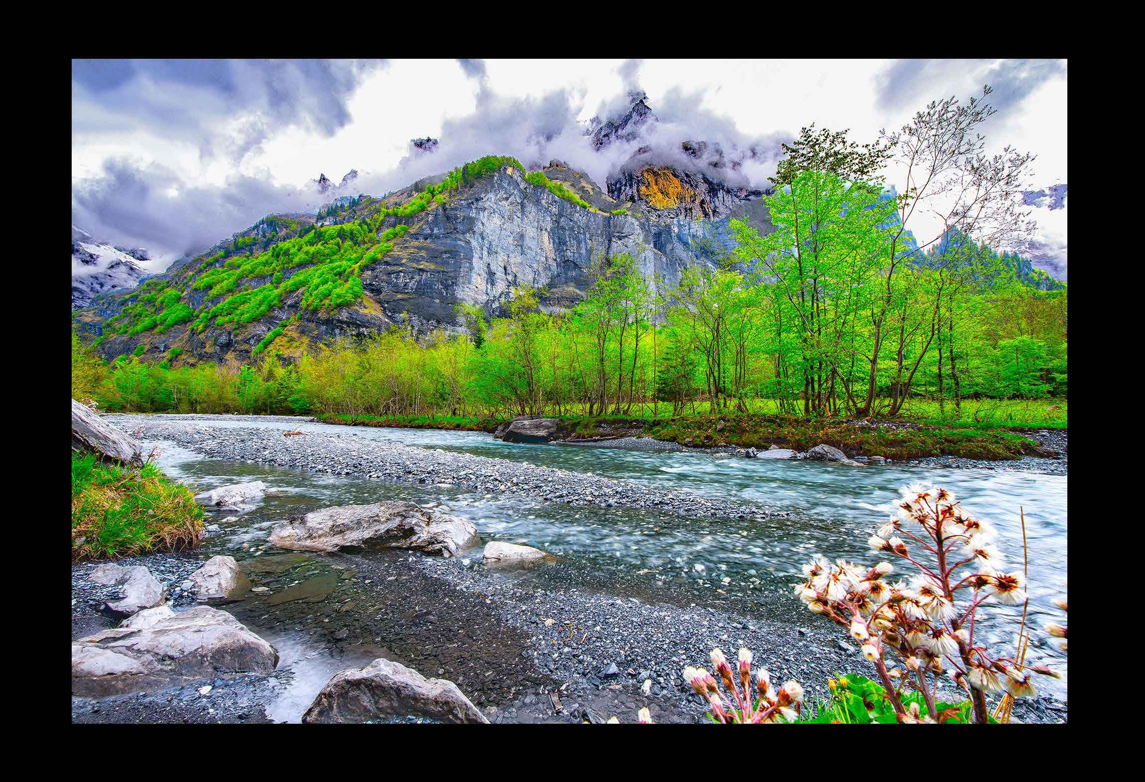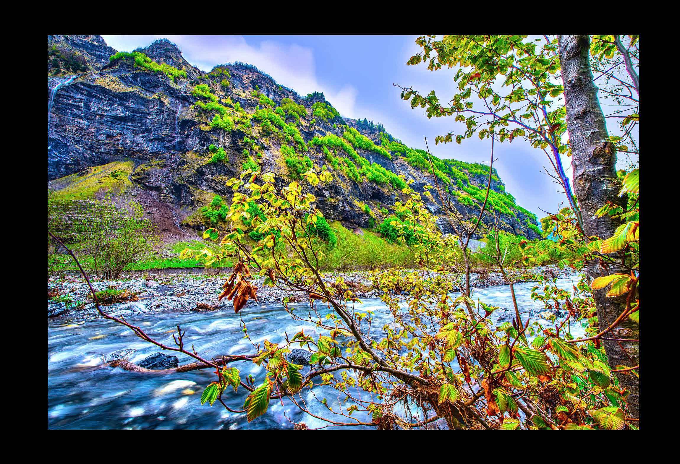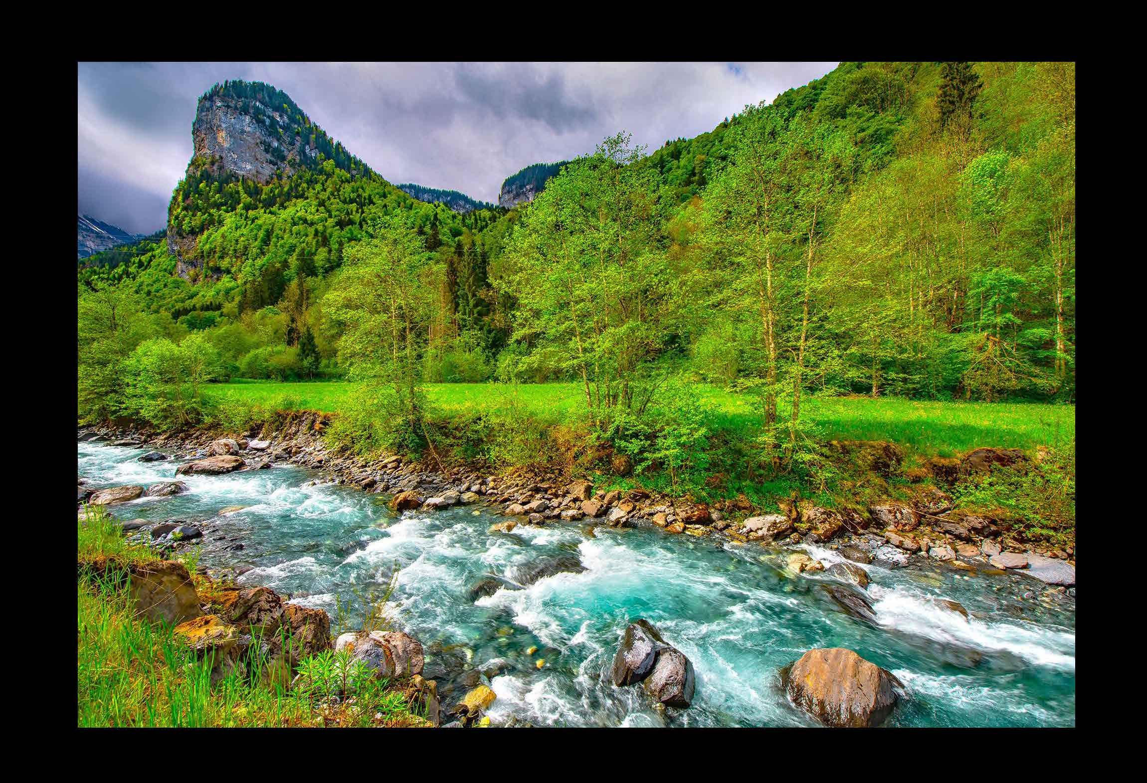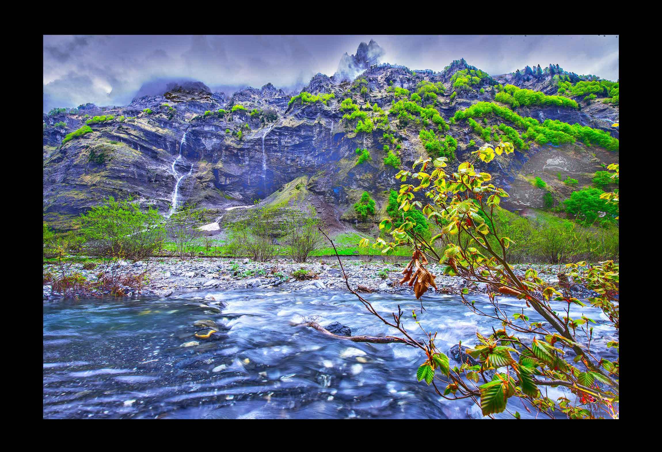 ornamental cliffs bordering the torrential and majestic "Giffre" strolling like the Prince of Céans.