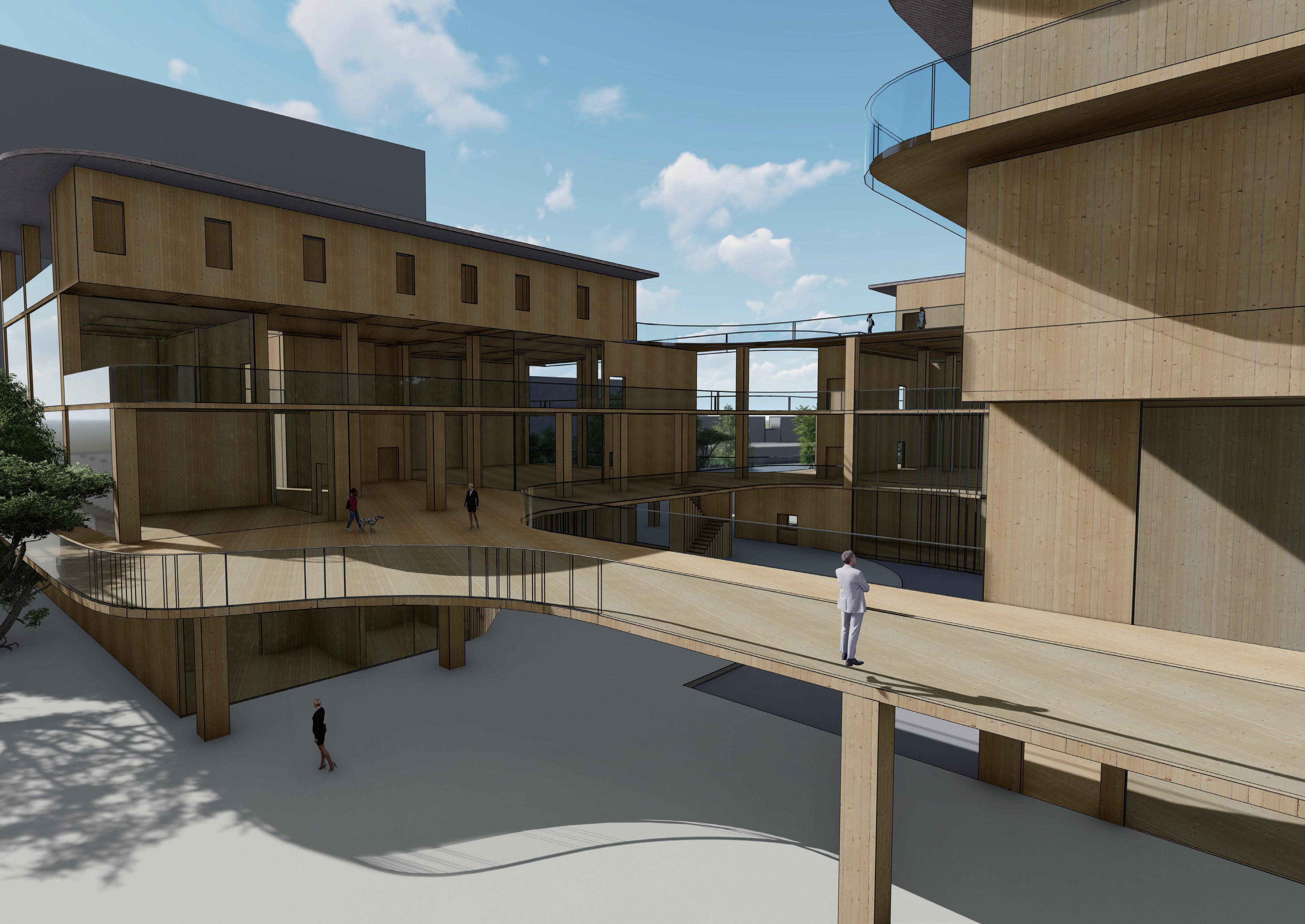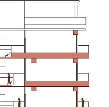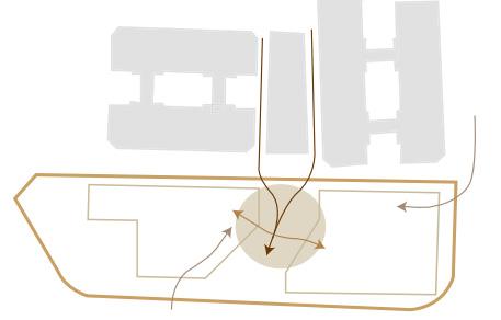 有的大型廣場,創造出每層樓都能 夠聚集的廣場。廣場的用途不只提