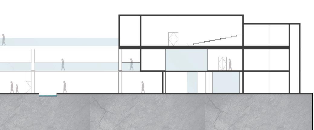 將藍帶的視線往上層移,讓貫穿建築的藍帶不只在一 樓能夠觀賞。