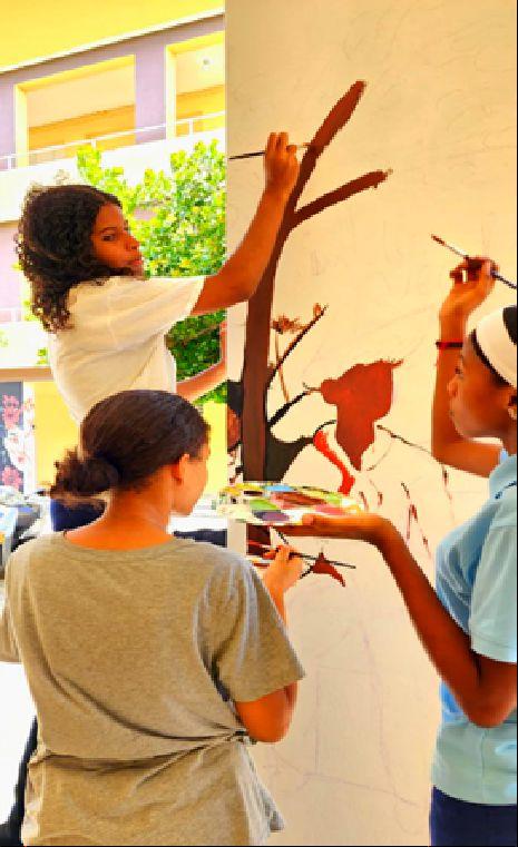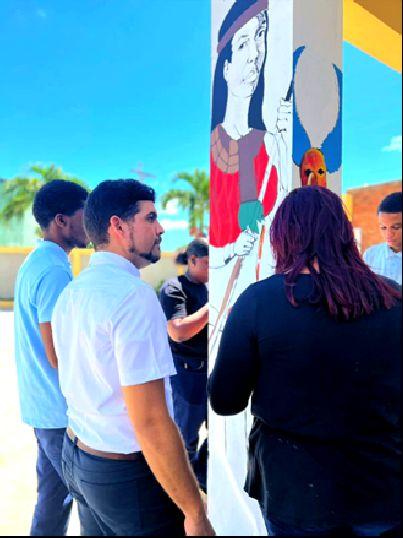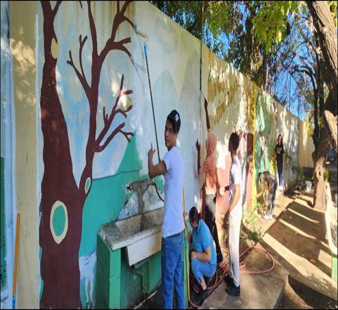En el Liceo Francisco Gregorio Billini, los estudiantes de artes visuales están llevando a cabo la restauración de murales, embelleciendo los espacios del centro educativo Por otro lado, en instituciones como Díaz Melo & Asociados-Arquitectos, la O cina de Ingeniero y Arquitecto Ubrí y el Ayuntamiento Municipal de Baní, los jóvenes aplican sus habilidades en dibujo arquitectónico, adquiriendo experiencia práctica en el campo de la arquitectura y el diseño.