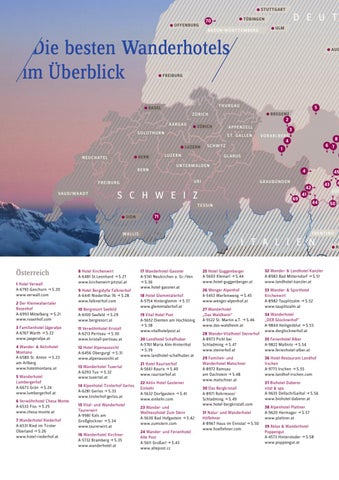 1 Hotel Verwall A-6793 Gaschurn → S.20 www.verwall.com 2 Der Kleinwalsertaler Rosenhof A-6993 Mittelberg → S.21 www.rosenhof.com