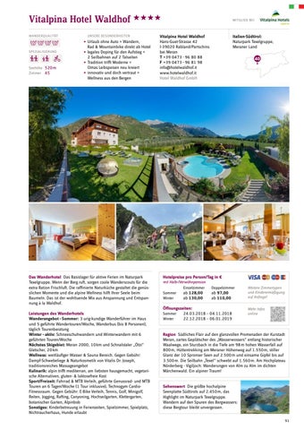 Vitalpina Hotel Waldhof Hans-Guet-Strasse 42 I-39020 Rabland/Partschins bei Meran T +39 0473 - 96 80 88 F +39 0473 - 96 81 98 info@hotelwaldhof.it www.hotelwaldhof.it Hotel Waldhof GmbH