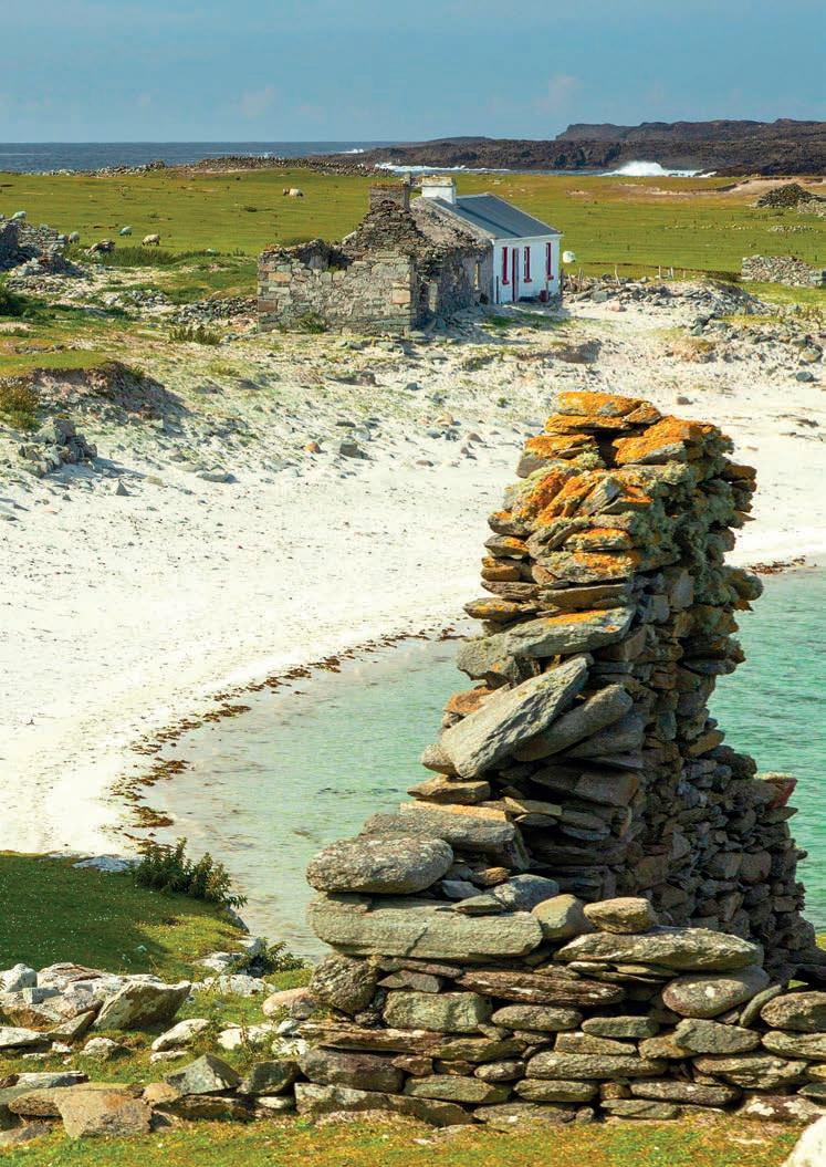 Lost records (this spread) The inhabitants of the Inishkea Islands left few records of their time there; (previous spread) tours of the abandoned village on Inishkea South reveal the remains of stone cottages from the 19th century