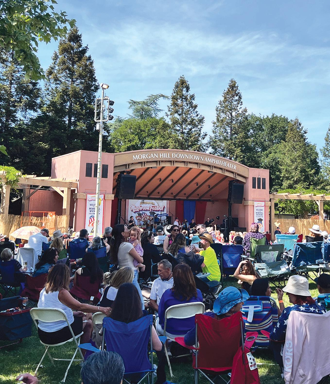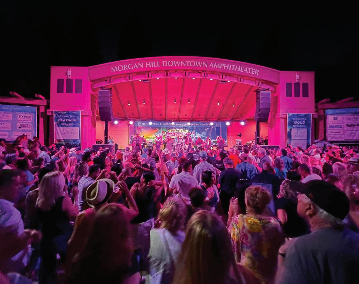 SERIES Between mid-June and mid-August, Morgan Hill weekends kick off with the Friday Night Music Series. Presented by the town’s chamber of commerce, the free event brings thousands of fans to the Morgan Hill Downtown Amphitheater. The concerts also showcase local wines: The beer and wine tent only features wineries from the Santa Clara Valley region.