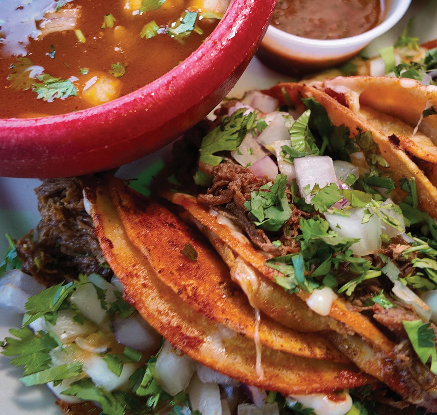 recommends PTT (Pham Thi Truoc Restaurant) for steaming bowls of pho, Ba Le Vietnamese for its crave-worthy sandwiches, and Taqueria La Original for Mexican food you “definitely don’t get at our regular onthe-border kind of spots,” like homemade mango and horchata popsicles and undeniably good Mexican street corn.