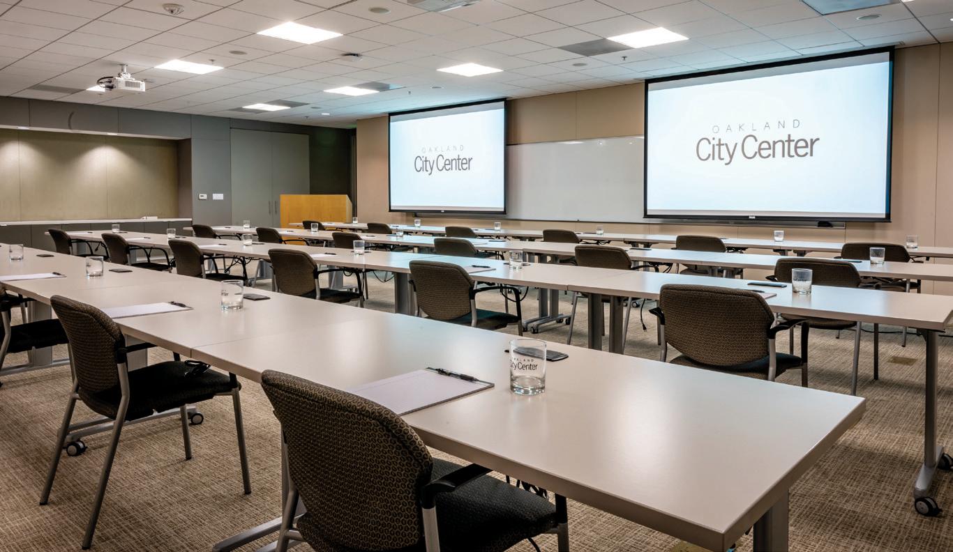 Oakland City Center also offers a Conference Center featuring five adaptable meeting rooms available Monday through Friday. Ideal for hosting gatherings, trainings, and more. Enjoy complimentary WiFi and cutting-edge audio-visual equipment with video conferencing capability to enhance your event. Visit Oakland City Center today!