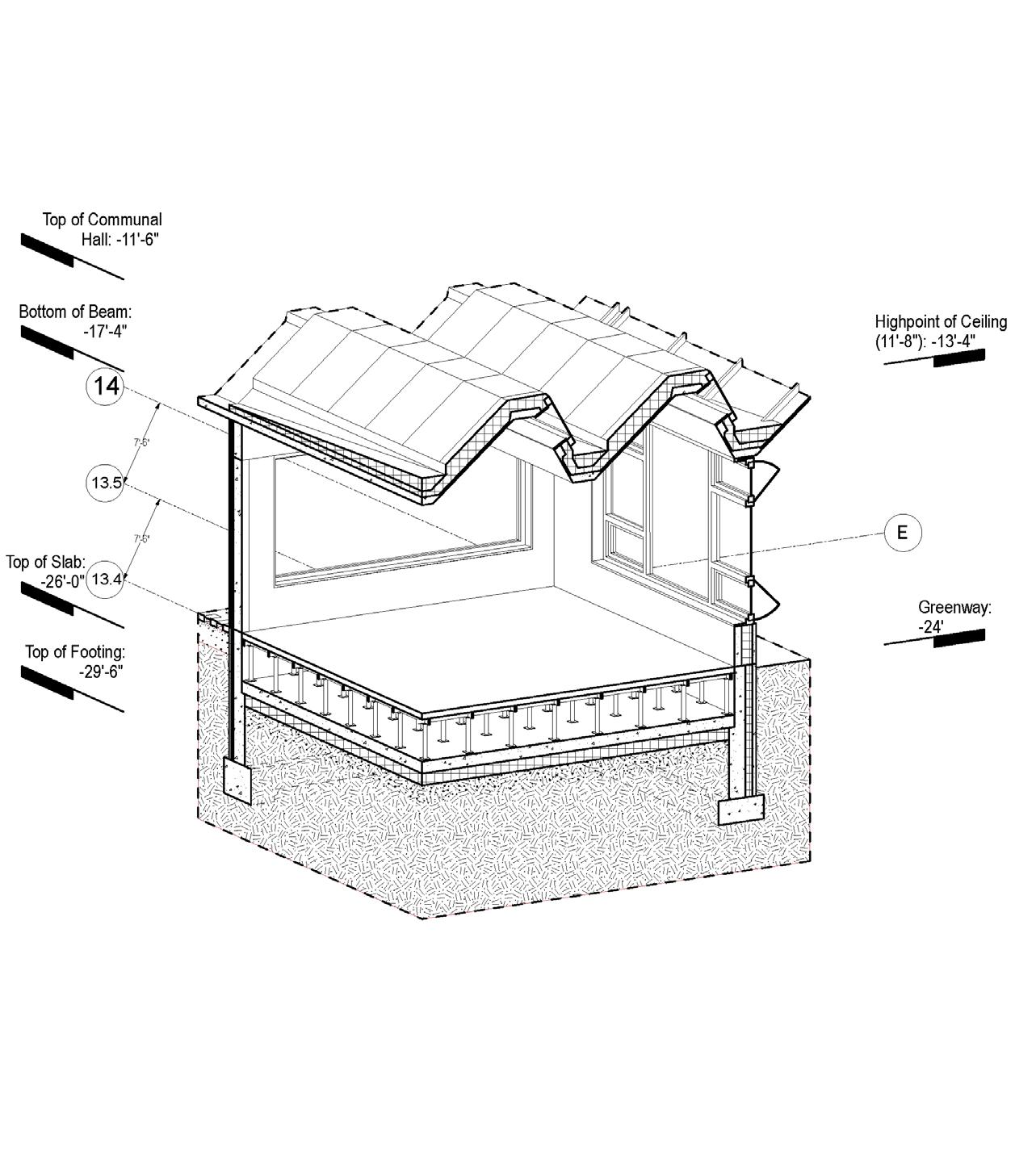 Privacy: play with the linear site’s elevation change to create programs interactive with street level, the Greenway level, and neither.