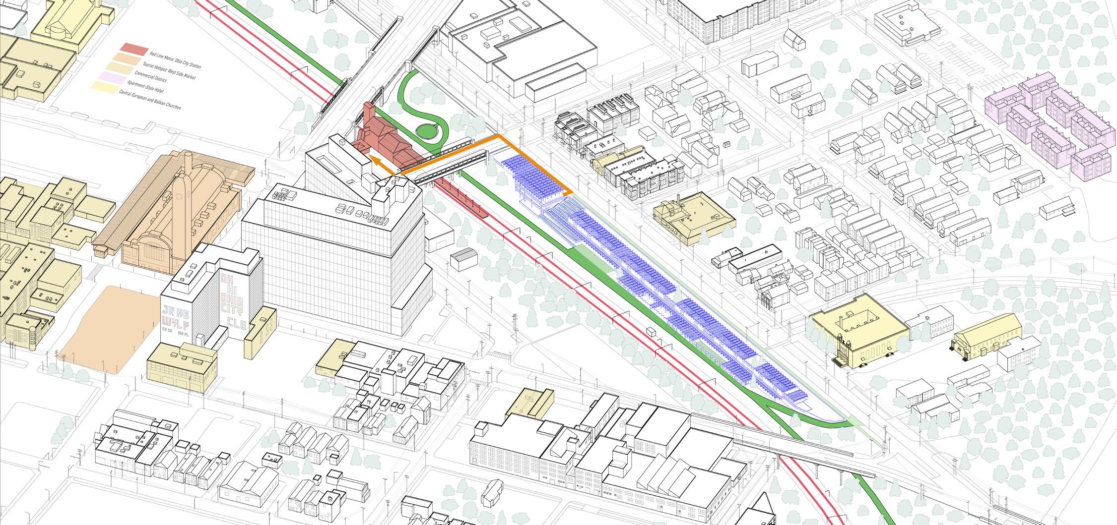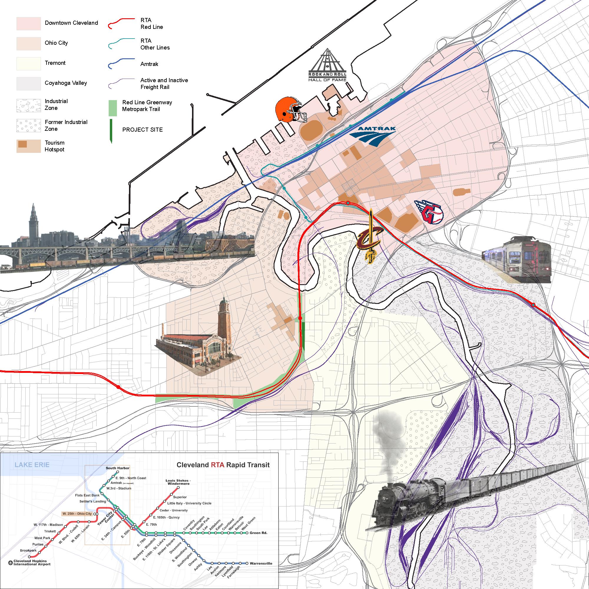Being an industrial and transportation center between the Midwest and the Northeast, Cleveland, Ohio is rich in railways in both historical and current day contexts. RTA Redline, the rapid transit connecting the Airport with Downtown Cleveland, crosses right next to the site.