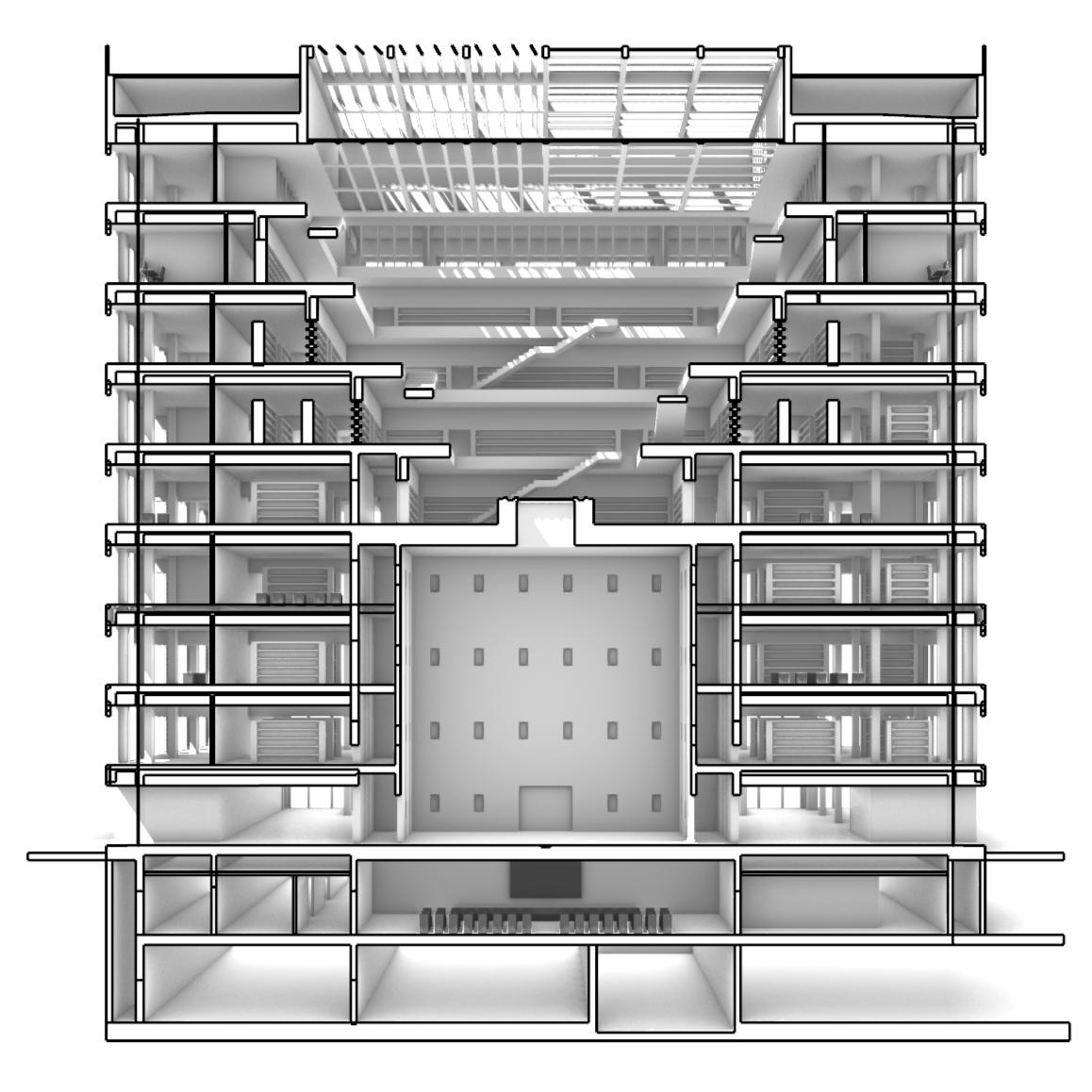 The proposal incorporates current elements into design strategies as critiques and inspirations. As an example, the dark interior is planned to be utilized for digital exhibit spaces, whilst other features may get altered. The boring and uninviting building will be converted into an interesting and attractive space to be a new beacon in Central London.
