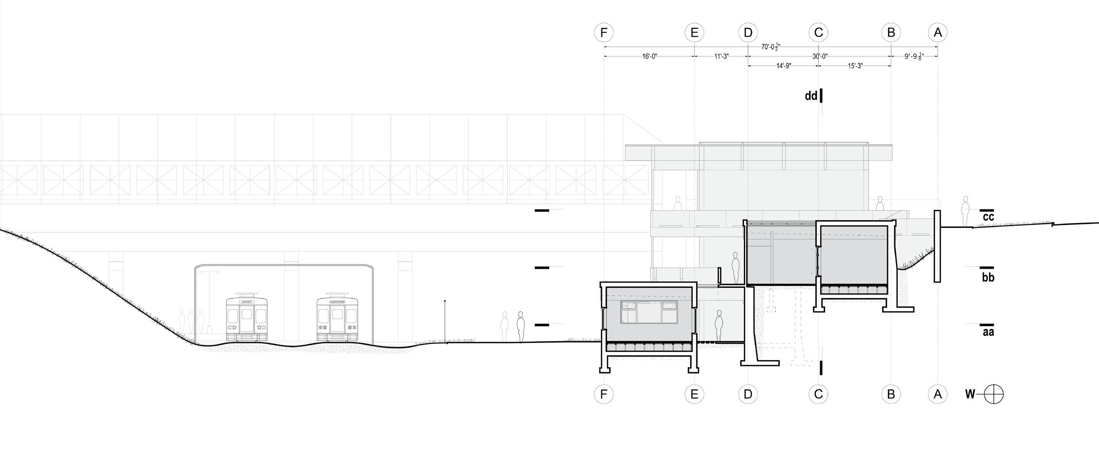 Spaces for public interaction on the site: cafe, plaza, ramp linking up the Greenway and the street.