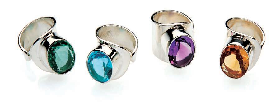 Sterling silver wrap-around rings with a choice of stones, including citrine, green or purple amethyst and topaz. €69–€129, from Martina, Loulé. martina.loule.com