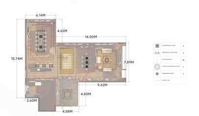 The breakfast bar receives natural day light from the north-east, allowing the area to be lit by naturally. A beautiful Japanese fan and an artwork on either wall encloses the dining area. It has a translucent opening through the shoji screen that provides access to the garden.