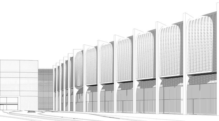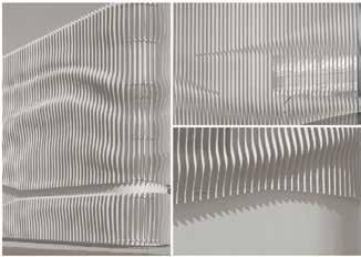 The facade draws inspiration from the idea of incorporating artwork as a design element, segmented by fins. This design allows for a unique visual experience from different angles, as the texture of the facade changes with each perspective.