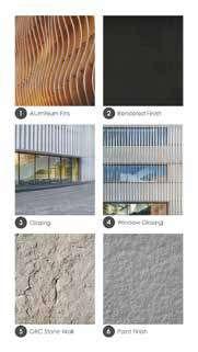 -The façade which has a vertical approach by using the fins elements across -The canopy which looks at the same fins’ language -The boundary wall and the corner feature edge wall which is highlighted through a natural finish