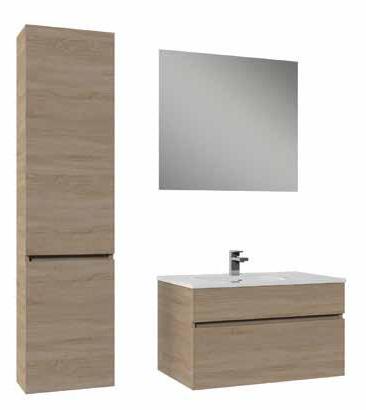 licht eik of wit hoogglans onderkast 80cm wastafel, spiegel Excl.kolomkast (€699 €449) op voorraad! -35% special price