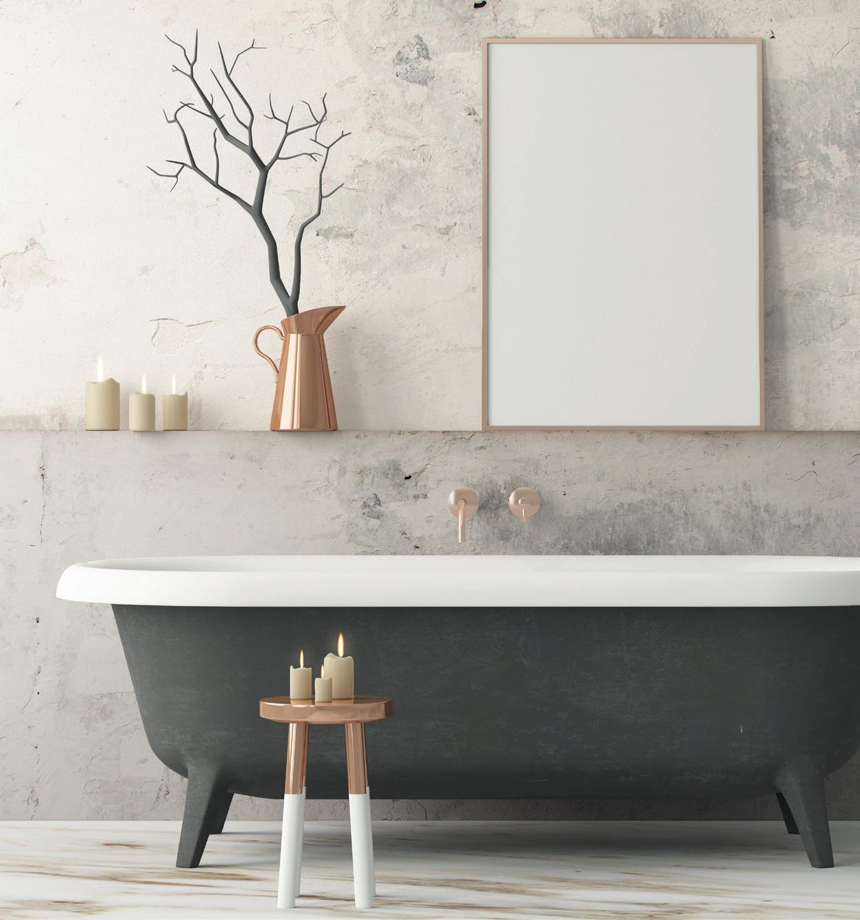 Je kan koper prachtig combineren met natuurlijke materialen zoals hout, textiel, bamboe en leder. Dit geeft je badkamer een warme en rijkelijke toets.