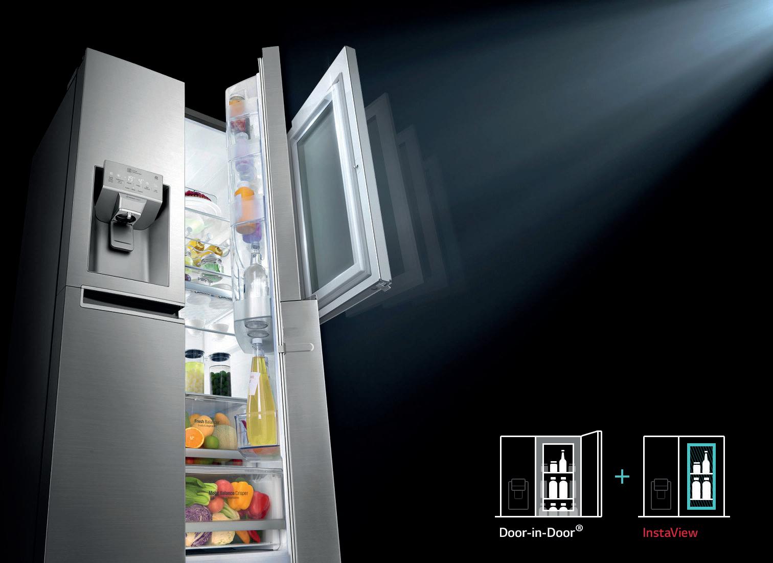 Het stevige spiegelglas van de InstaView Door-in-Door™ wordt transparant wanneer er twee keer op het raam wordt geklopt. Zo kun je, zonder de deur te openen, zien wat er in de koelkast staat. Naast de transparante deur heeft de koelkast ook een deur-in-deursysteem: dit is een kleine deur in de grote deur waar je jouw meest gebruikte producten in zet. Zo gaat er minder koude lucht verloren en blijven de opgeslagen producten langer vers.