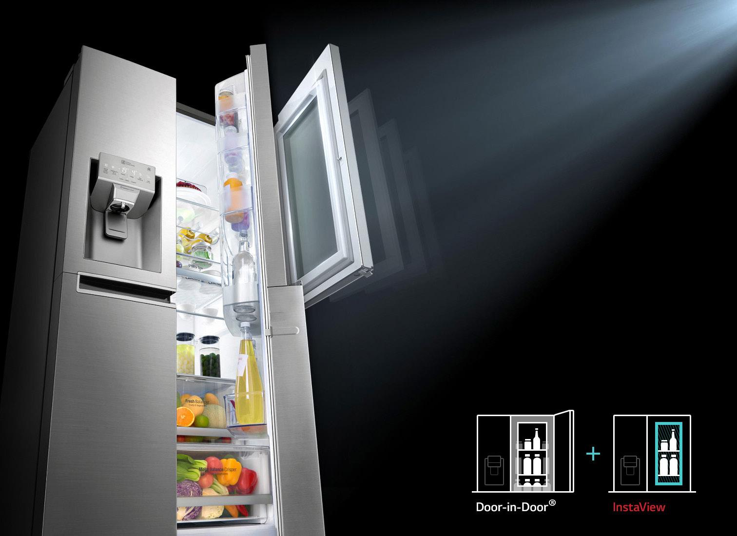 Het stevige spiegelglas van de InstaView Door-in-Door™ wordt transparant wanneer er twee keer op het raam wordt geklopt. Zo kun je, zonder de deur te openen, zien wat er in de koelkast staat. Naast de transparante deur heeft de koelkast ook een deur-in-deursysteem: dit is een kleine deur in de grote deur waar je jouw meest gebruikte producten in zet. Zo gaat er minder koude lucht verloren en blijven de opgeslagen producten langer vers.