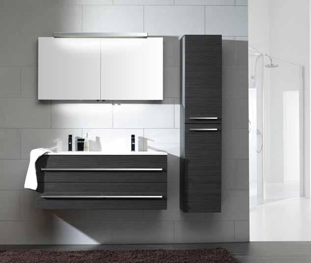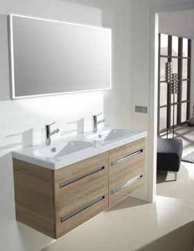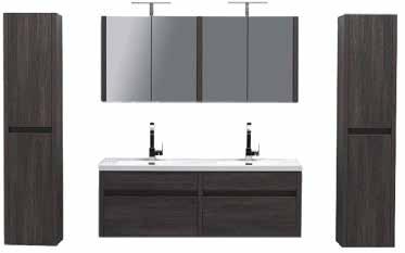 Donker eik, taupe of hoogglans wit Onderkast, lavabo en spiegelkast 120cm Op voorraad Optie: kolomkast €260 excl. kranen en accessoires