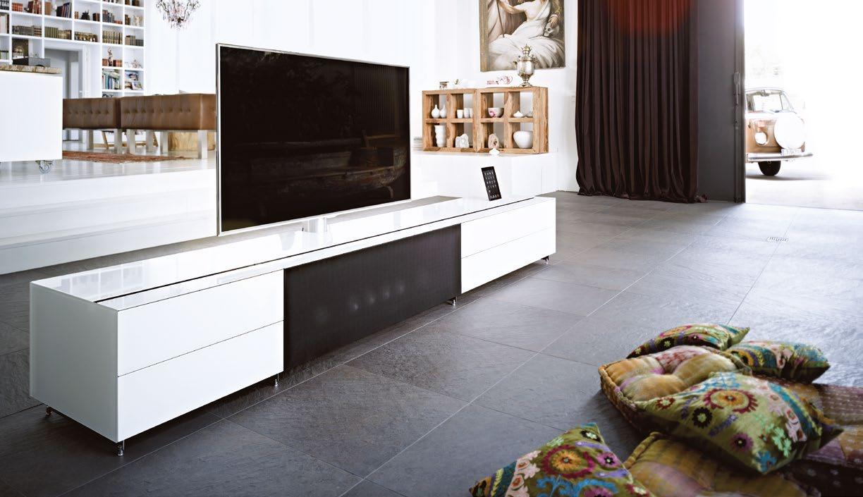 Bij de sPeC tral t V meubel oplossingen zijn de luidsprekers onzichtbaar weggewerkt in het meubel. De kabels zijn verstopt en de iPhone, iPad, iPod of samsung galaxy s iii en galaxy note ii krijgen een vaste plaats op het meubel, tegelijkertijd wordt hij opgeladen of kan u uw muziek beluisteren of foto en films afspelen. u heeft maar één afstandsbediening meer nodig en met de infrarood link bedient u al uw apparaten met gesloten klep. Meer info kan u vinden op spectral.eu