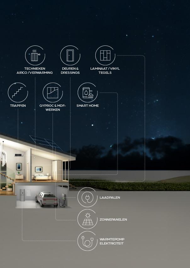 We staan je ook bij in alle technische aspecten van je nieuwbouw- of renovatieproject. Zoals elektriciteits- en leidingwerken, airco’s, verwarming, zonnepanelen en domotica. Ook in de afwerkingsfase (met gyproc- en schilderwerken) schieten we niet te kort.