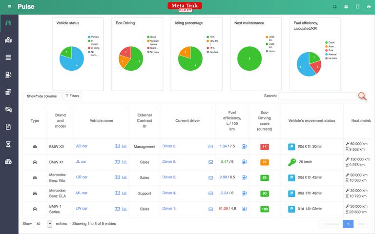 ALLE METATRAK FLEET-PAGINA'S BESTAAN UIT INTUĂŹTIEVE DASHBOARDS.