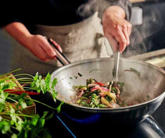 Eenpansgerechten beperken je energieconsumptie (en afwas). Wokken is een supermethode, omdat het zo snel gaat. Zeker met de meerlagenbodem, met TriplInduc, van onze Apollo 7 wokken. Bovendien is het een gezonde kooktechniek!