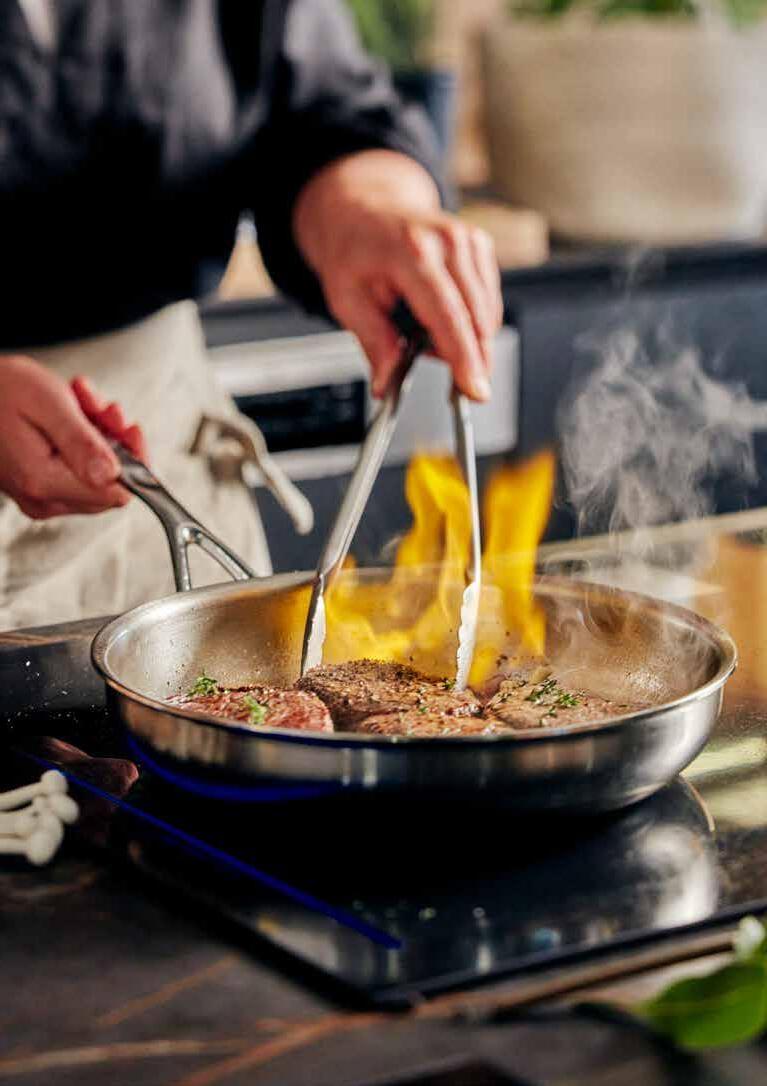 Proline 7 is voorzien van TriplInduc en bakt echt tot aan de rand. Het is een extra dikke pan die de warmte uitstekend en langdurig vasthoudt. Voor een perfect gebakken stukje vlees.