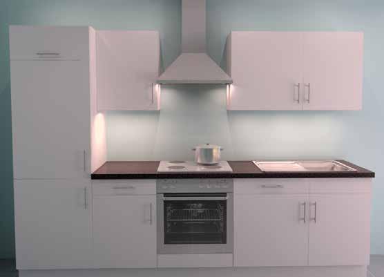 Keukenblok - Frontkleur wit - Incl. zwart werkblad - Incl. ZANUSSI kookplaat, oven, koelkast en dampkap - Incl. Spoeltafel en kraan ( Bovenstaande prijs is de afhaalprijs)