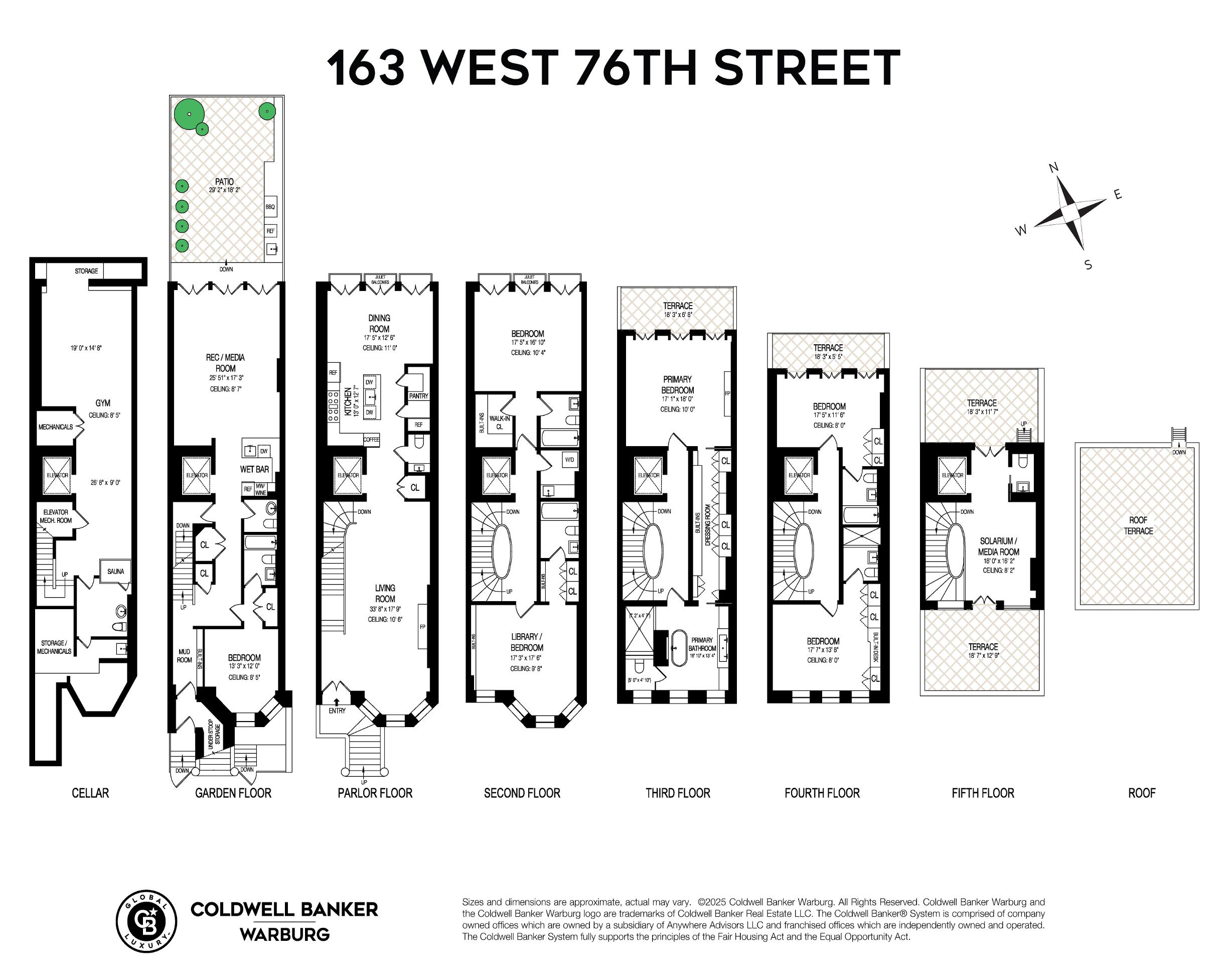 Thefifth-floor penthouse, added asabonuslevel, providesflexiblespacefor amediaroom, studio, or solarium and opensonto two expansive roof decks finished with bluestonepaving, superior copper waterproofing, and asecond outdoor grill. An additional upper roof offersbreathtakingpanoramiccity views.