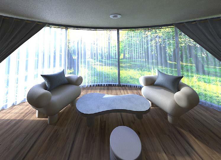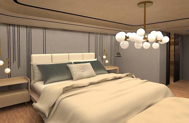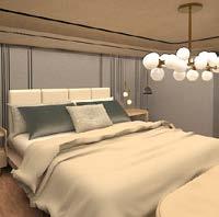 This space blends contemporary design with luxurious comfort. The bedroom features soft tones and ambient lighting for a cozy atmosphere. Large windows enhance the connection with nature, creating a serene and inviting ambiance.
