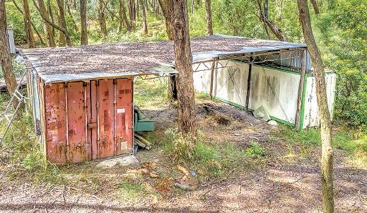 l 6m x 9m high clearance shed with power, mezzanine storage and large sliding doors for easy access