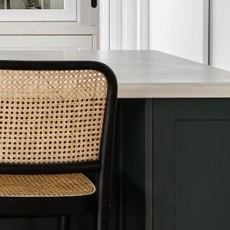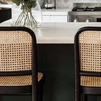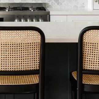 The deep island bench with multiple drawers doubles as a breakfast bar.