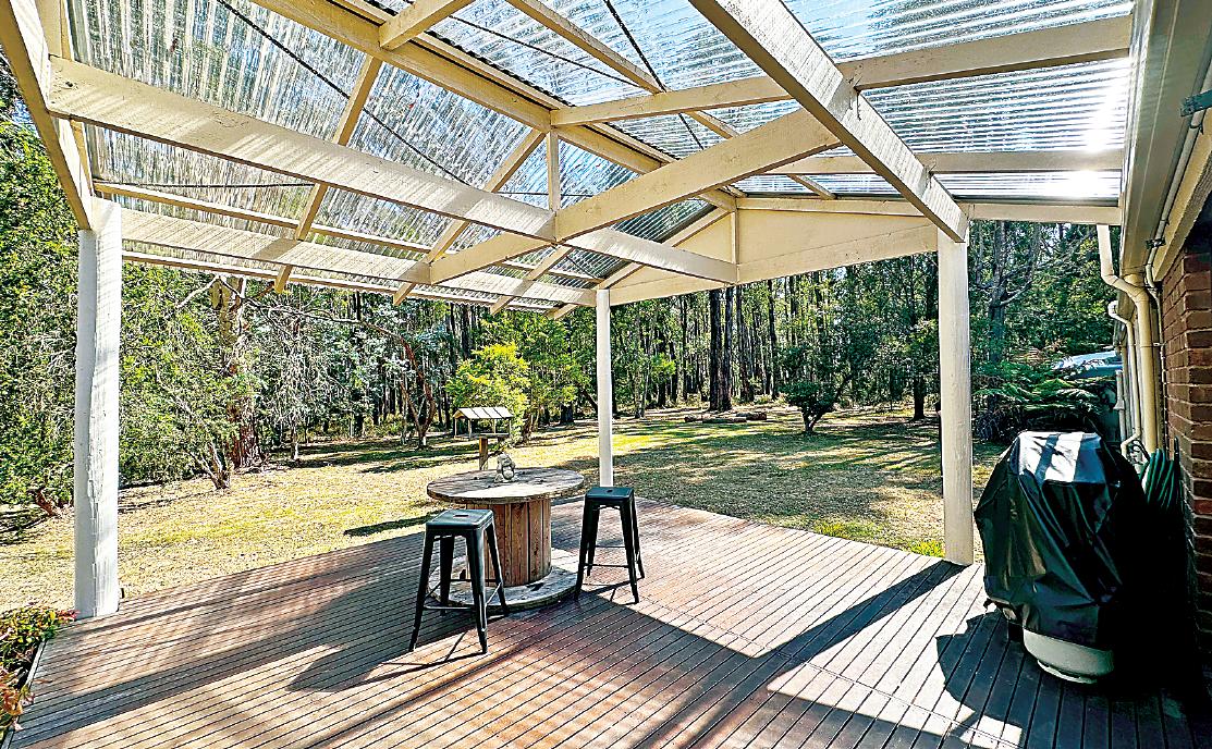 A large L shaped sheltered deck caters for outdoor entertaining and has a wonderful vista over the gardens and surrounds.