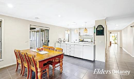 Neutral decor is included in the kitchen complemented by a gas cooktop, electric underbench oven, dishwasher, two door pantry, space for a large fridge and a breakfast bar.