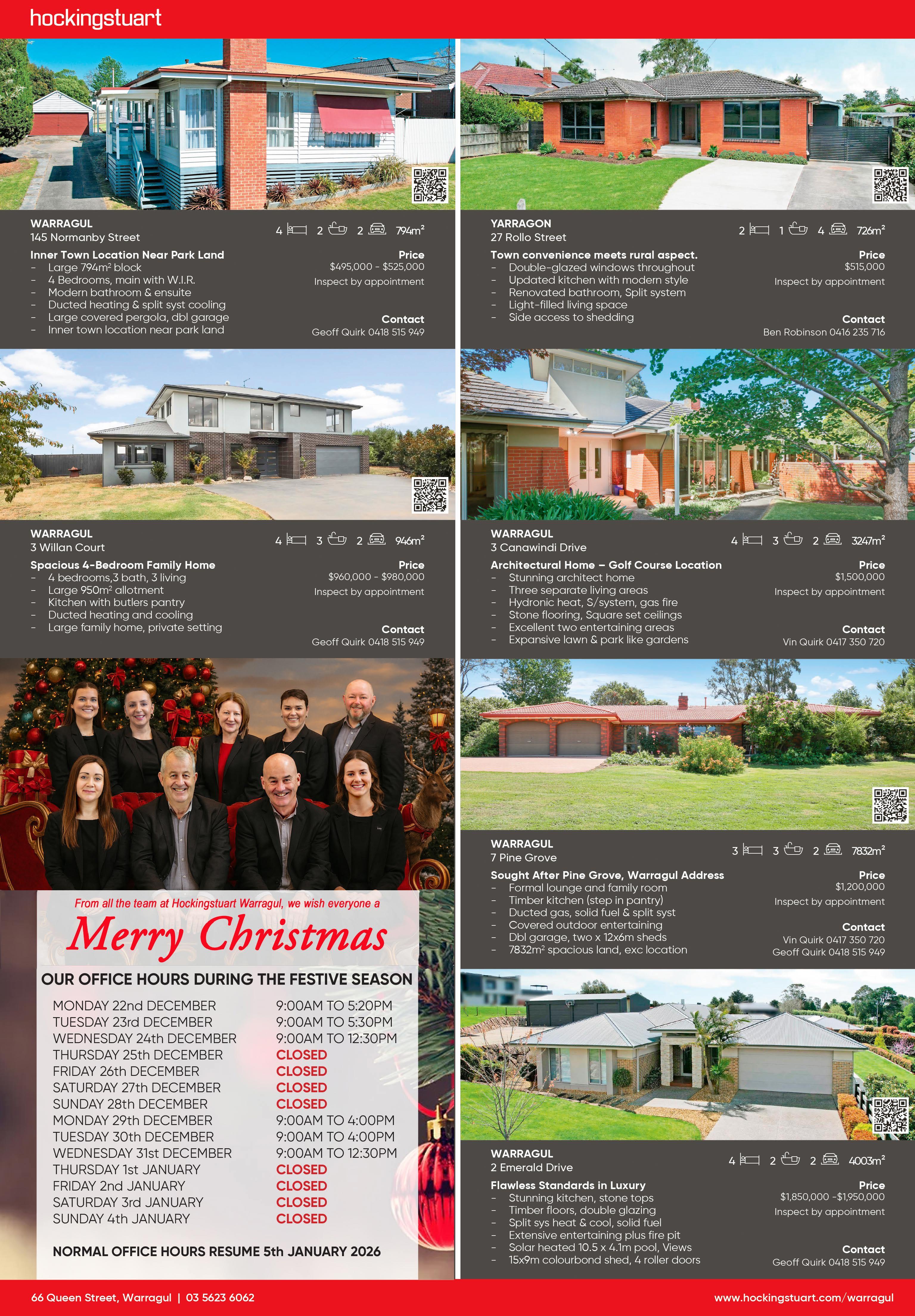 For additional information contact the marketing agent Elise Davidson from OBrien Real Estate Clark on 5625 1671 or 0412 829 552. Price range $949,000 to $1,000,000.