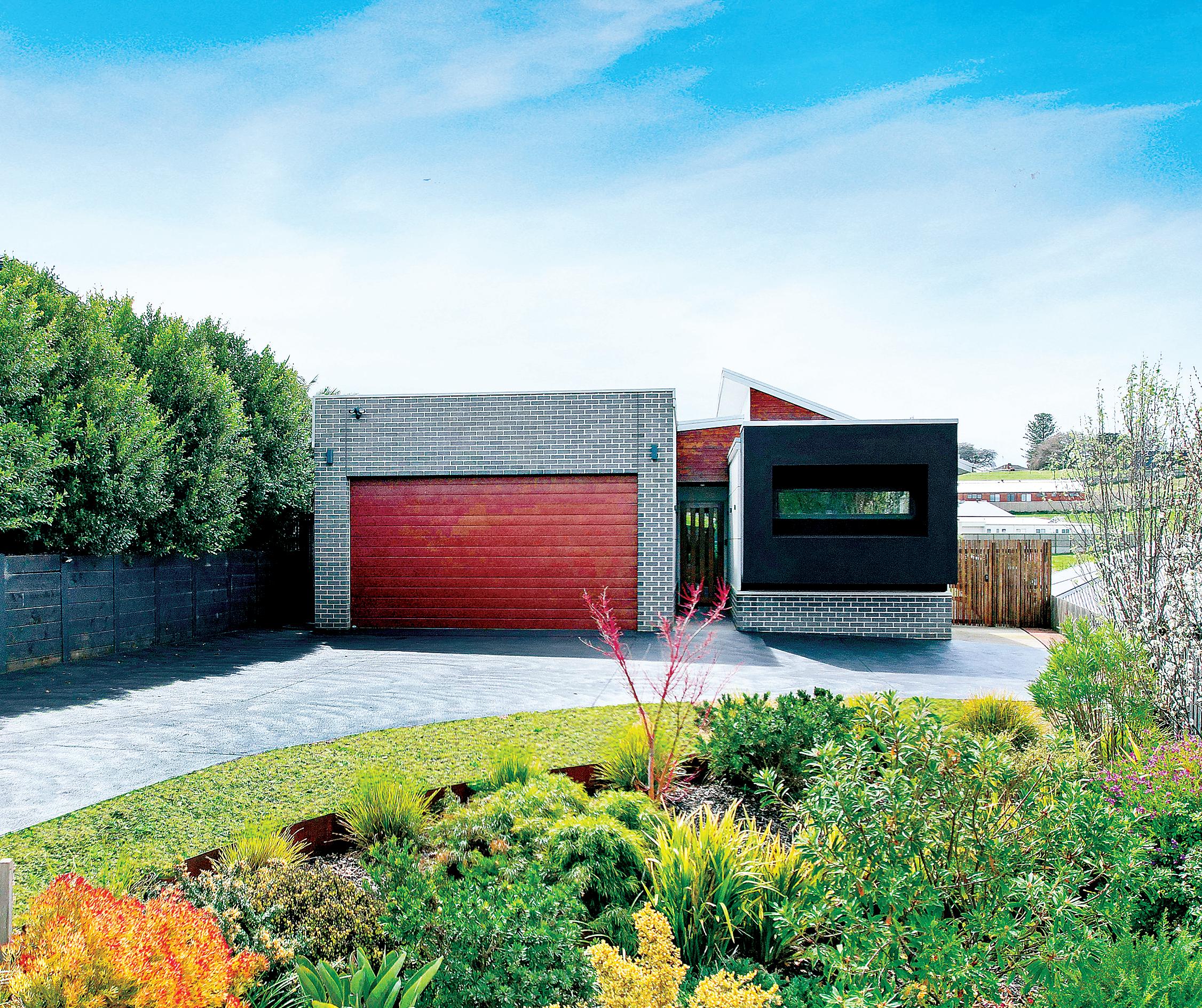 Strip windows in the pantry and above the cooktop overlook a colourful display of garden beds and fruit trees.