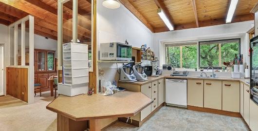 An integrated dishwasher, additional sinks and shelving are found in the butler’s pantry, which connects to the laundry.