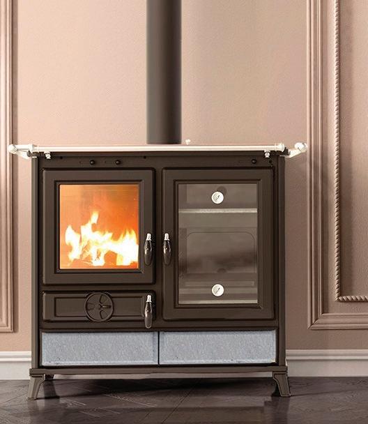 Pride of place is the impressive black Falcon multi oven cooker set into the fireplace with overhead mantel.