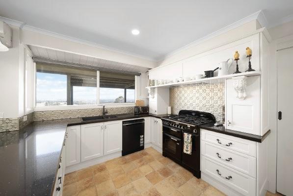 Appliances include a five burner gas cooktop, 900mm under bench oven, dishwasher and an integrated microwave.