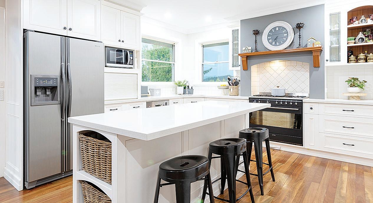 A Westinghouse ceramic cooktop, wall oven and ample storage, including a pantry created under the stairs, are further features.
