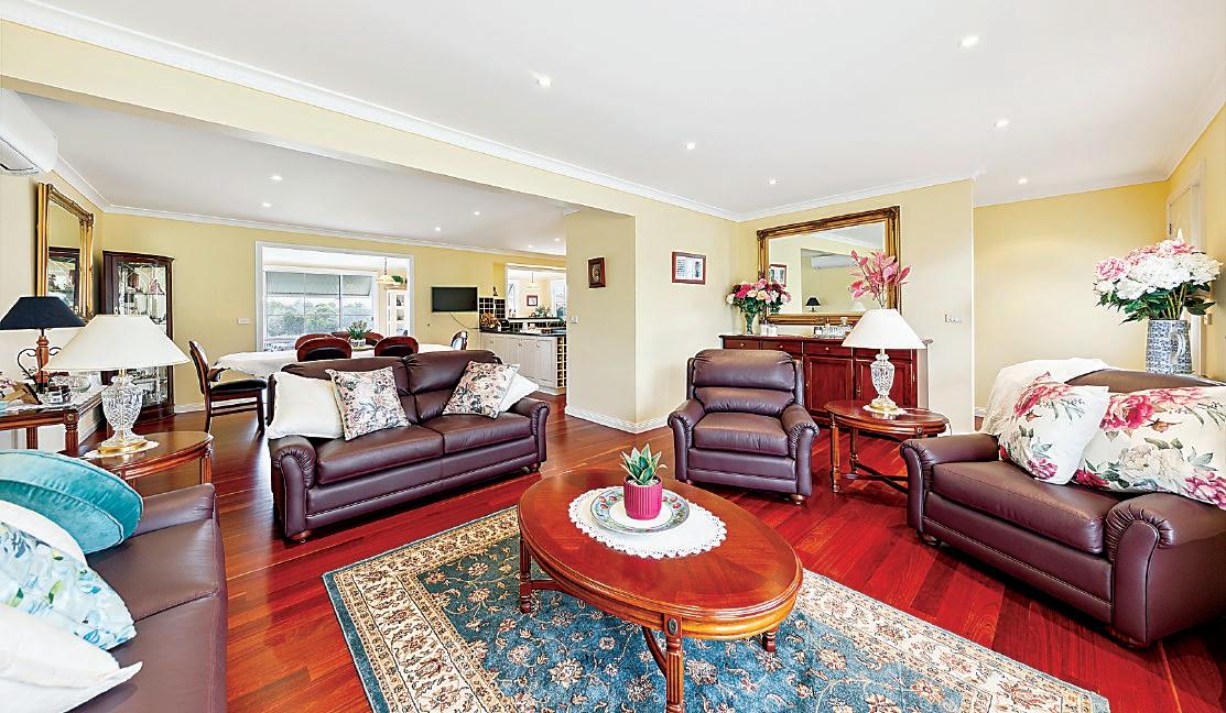 Adjoining the family room is the smaller sitting room which links the three secondary bedrooms, all with inbuilt robes, spotless family bathroom with a deep oval bath, vanity and shower plus the separate toilet.